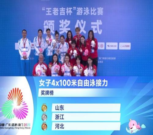 但是山东队的发挥非常好。第一棒葛楚彤游出了54秒83的成绩排名第二,王一淳游出了54秒01的成绩,冲到了第一。张昕煜游出55秒02的成绩。浙江队依靠柳雅欣游出53秒90的成绩成功升到了第一的位置。最后一棒,杨浚瑄和吴卿风进行精彩对决,她一路追赶,最终在最后时刻完成了超越。山东队以3分36秒51的成绩夺冠,而浙江队3分36秒61屈居亚军。