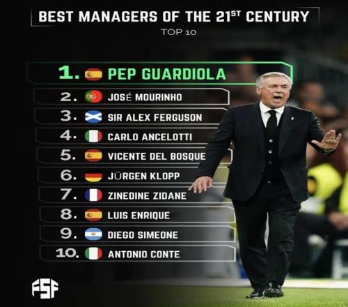 21世纪十大主教练榜单发布!安切洛蒂次不如穆里尼奥温格落榜