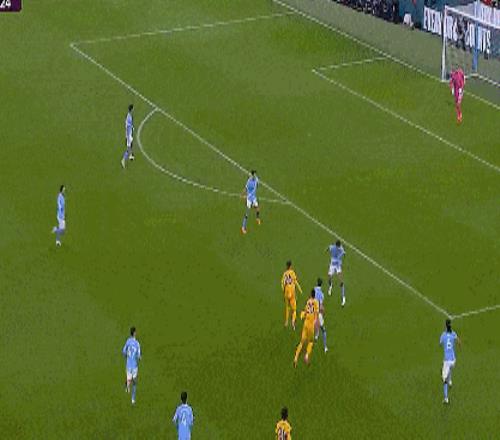 第82分钟,哈兰德禁区左路强行超车,一脚爆射击中边网。